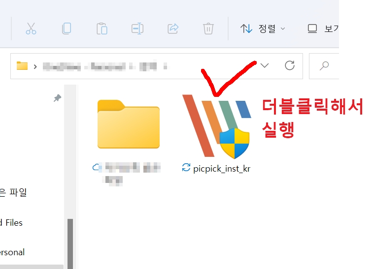 컴퓨터 창 왼쪽 하단에 픽픽이 다운로드됩니다.