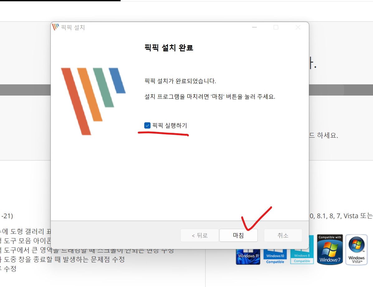 컴퓨터 창 왼쪽 하단에 픽픽이 다운로드됩니다.