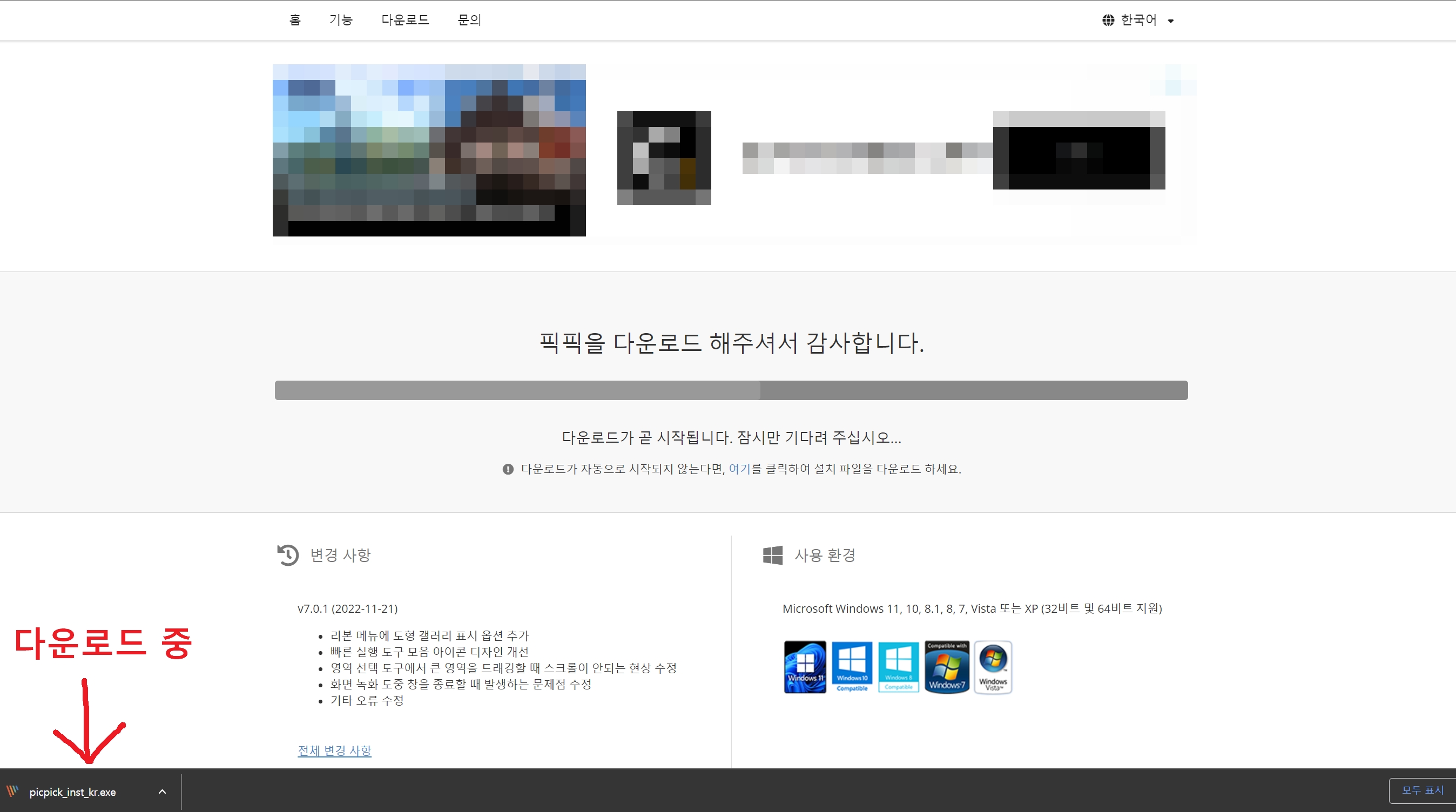 화면캡쳐프로그램 픽픽 무료 다운로드 바로가기 (클릭)