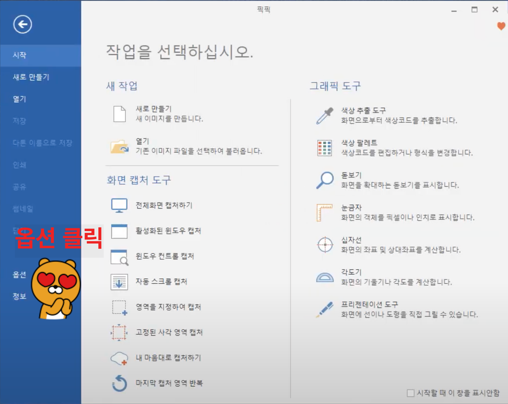 픽픽 화면캡쳐프로그램을 다운로드받아주세요.